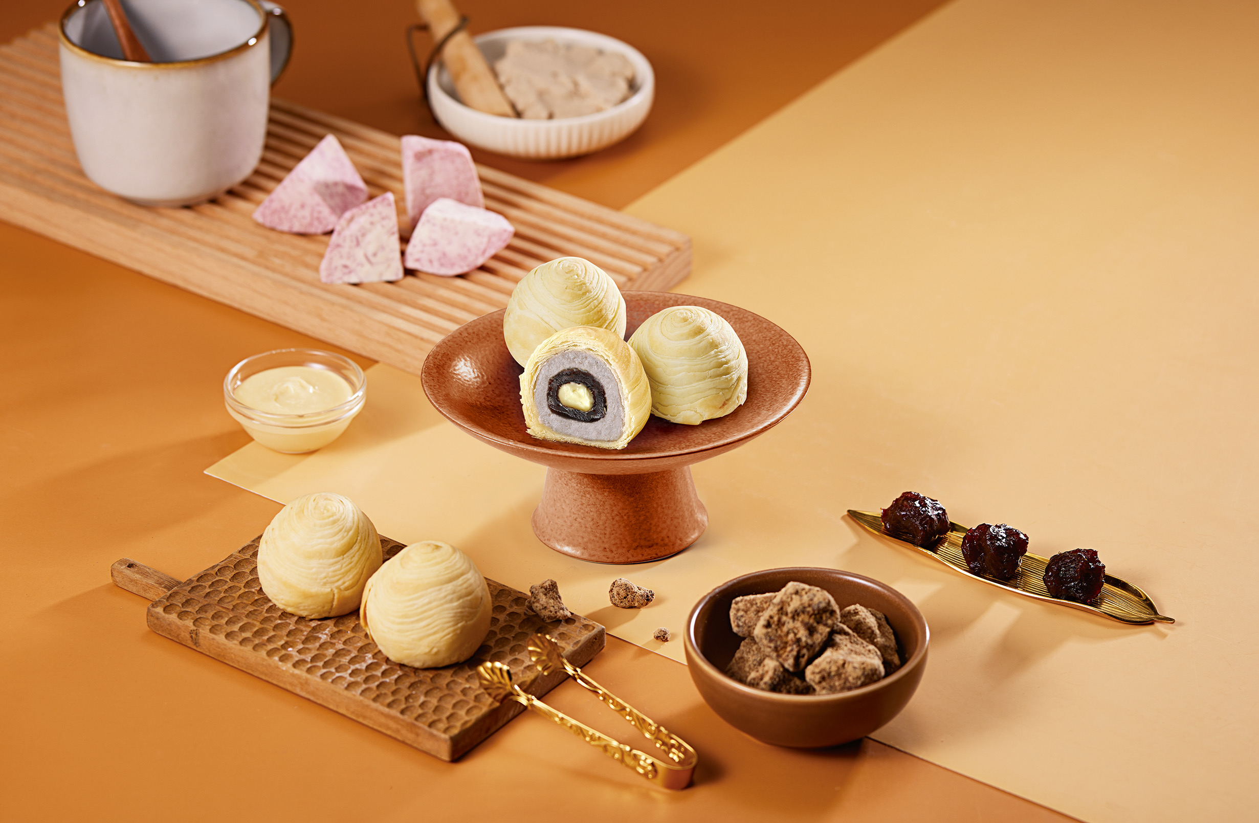 『好芋兆禮盒』,其中包含四款傳統節慶必備的糕點,口感酥軟細緻、內餡香鹹不膩,讓您感受到傳統美食的精髓。讓好芋兆陪伴您過節,分享甜蜜的幸福時光